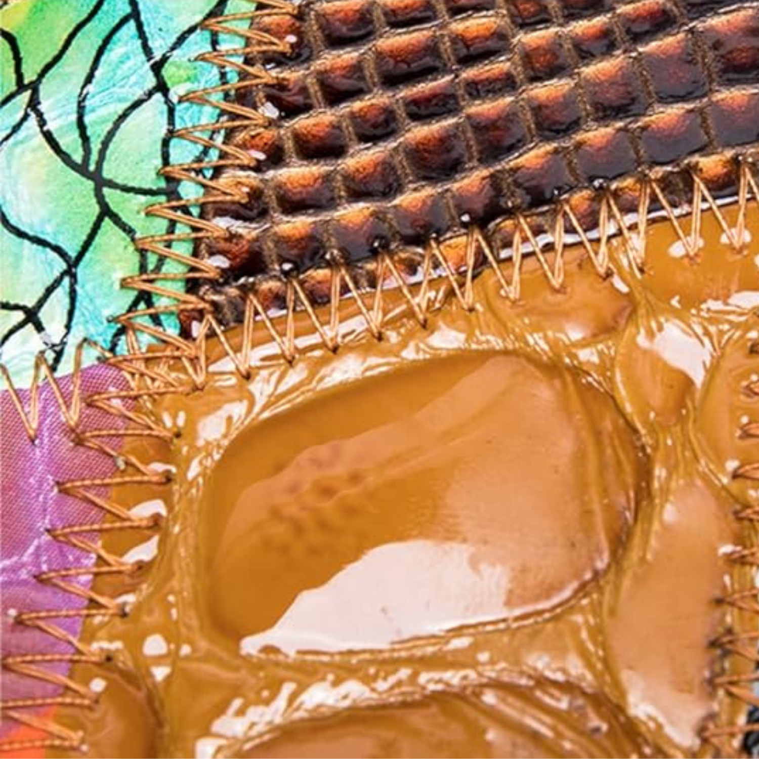Das Besondere an dieser Geldbörse ist ihr einzigartiges Patchwork-Design. Wie bei einem Mosaik werden sorgfältig ausgewählte Stücke aus echtem Rindsleder in unterschiedlichen Farben und mit verschiedenen Oberflächenstrukturen kunstvoll zusammengenäht. Von glänzendem Lackleder über genarbtes Leder bis hin zu Stücken mit Krokodilprägung entsteht so ein harmonisches und doch aufregendes Gesamtbild.