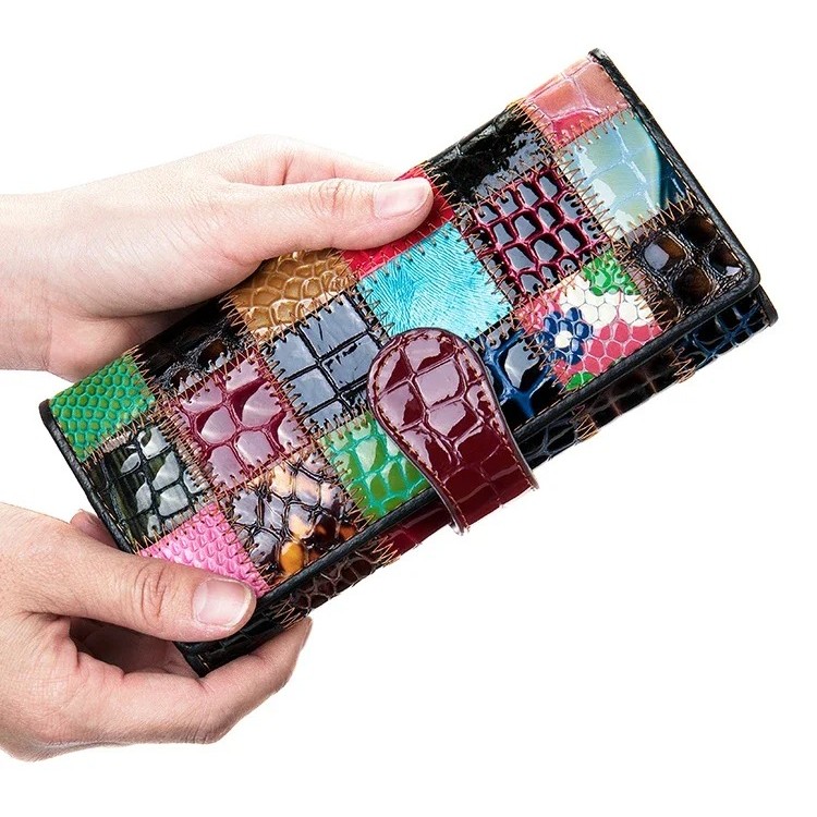 Bunte Patchwork-Geldbörse aus echtem Leder: Endlich alles Wichtige an nur einem Ort